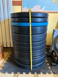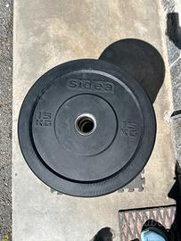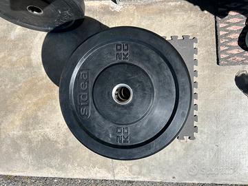 Vendo per inutilizzo dischi palestra bumper e dischi in ferro verniciato con foro 50mm. Tenuti in ottime condizioni con qualche segno di usura. 170 kg di dischi vendibili anche solo a coppie: 4x5 kg 4x 10 kg 2x 15 kg 2x 20 kg 2x 20 kg in ferro verniciato blu Costo 1,5-2 euro al kg a seconda del numero di dischi comprati