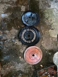 Vendo 6 dischi usati per bilanciere olimpico: - 2 dischi da 10 kg Lacertosus - 2 dischi da 10 kg - 2 dischi da 5 kg