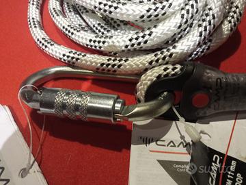 Vendo dispositivo nuovo per sport arrampicata anticaduta per corde semi-statiche da 10 a 11 mm, 2 moschettoni in acciaioper l'uso con carrucole, discensori e bloccanti euna fettucciadi prolungamento per anticaduta Goblin di 40cm ecorda Iridium 11 mm da 10 metri In aggiunta moschettone in acciaio e Goblin rope surfer. Tutto con libretti di istruzione .