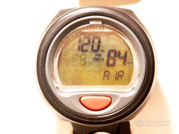 Computer da immersione Mares Puck wrist 414117 - Nuovo, mai usato - confezione originale. Funzionamento con 1 solo pulasnte- per polso o console - funzionalità nitrox o aria - batteria sostituibile - max profondità 150 m t ; capacità memoria log book 38 hr- programma aggiustamento altitudine e settaggio acqua dolce/salata- unità di misura m/min - ft/min atteria rimpiazzabile 3 volt CR 2450 - Indicatori power - Display " great readability" Allarmi ben udibili.