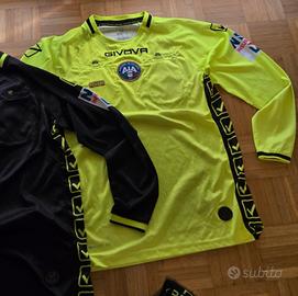 in vendita divisa arbitro originale completa arbitro givova taglia M, gialla e nera manica lunga, con calzettoni e pantaloncini. come in foto, no. 2 maglie taglia M un pantalone e un calzettone. la divisa è originale, usata pochissimo in ottime condizioni. possibilità di spedizione o consegna a mano.