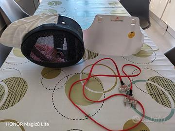 praticamente nuova vendo divisa completa da scherma per mancino più spada, in ottime condizioni, pronta per allenamenti e gare. Dettagli - Giacca specifica per mancino (chiusura e protezioni lato destro) marca Eurofencing. -Pantaloni coordinati -Tessuto resistente e traspirante -Taglia: 42 Accessori inclusi •Corpetto protettivo •Maschera marca Allstar •Calze da scherma •Guanto •Cavo •Spada Prezzo 300 euro Disponibile per consegna a mano o spedizione Contattare Manuela 347/4095368