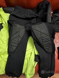 il pantalone lungo la una delle protezioni al ginocchio rovinata