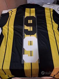 Vendo completo sportivo marca Zeus, taglia XXL. Colori vivaci giallo e nero, ideale per attività sportive all'aperto e indoor. Composto da maglia e pantaloncini, offre comfort e stile. Perfetto per un look sportivo accattivante e comodo, omaggio del numero applicato sulla maglietta disponibile in altre taglie , inoltre disponibili tantissimi altri kit in colori e taglie diverse.
