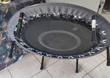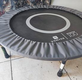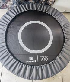 trampolino elastico DOMYOS Decathlon da 100 cm, usato pochissimo e in condizioni pari al nuovo. Ideale per allenamento cardio e tonificazione direttamente a casa. ✨ Caratteristiche principali Diametro totale: 100 cm Superficie di salto: 80 cm Struttura: acciaio resistente (tubi 1,2 mm) Sistema: 36 molle per rimbalzo dinamico Stabilità: 6 piedi con pattini antiscivolo Altezza: 21,5 cm Portata max: 80 kg Peso: 6,8 kg 💪 Benefici Migliora la resistenza cardiovascolare Tonifica gambe, core e parte superiore Aiuta equilibrio e coordinazione 📦 Pratico e compatto Facile da riporre sotto il letto o dietro una porta, perfetto anche per piccoli spazi. 📊 Condizioni Estetica: come nuovo Funzionamento: perfetto 🤝solo Ritiro a mano
