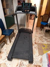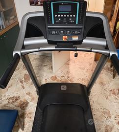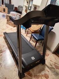 tapis roulant elettrico professionale acquistato da Decathlon ed usato pochissime volte, completamente elettronico, velocità ,inclinazione, tipo di allenamento, casse acustiche e jack per cuffie e collegamento tablet o smartphone ripiani portaoggetti e display con visione allenamento tutti i dati kcal. kmh . inclinaz. difficoltà percorso . varie funzioni digitali e cardiofrequenzimetro touch sul passamano. motore potentissimo e ammortizzatori sotto la pedana per evitare traumi alle caviglie. professionale. solo impolverato come nuovo.
