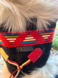 Bellissimi stivali dopo sci della Tecnica in pelliccia con decorazioni tessuto colorate alla Indiana, imbottiti, numero 37, vintage anni 90 come nuovi