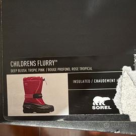 Vendo splendidi doposci originali SOREL Children’s Flurry, colore rosa acceso (Deep Blush / Tropic Pink), numero 30 EU (17,5 cm).