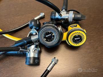 Vendo per passaggio a modello superiore (tecnico) due primi stadi Mares MR12 (uno attaco INT e l’altro DIN) con due secondi stadi MARES PROTON e PROTON METAL. In configurazione separata con DOPPIA frusta (una gav e l’altra per la stagna). Senza manometro. Hanno sempre fatto il loro lavoro, utikizzati fino a due settimane fa quando poi sono passato a quelli nuovi. Se siete di Vicenza ve li posso far provare gratuitamente in piscina. Essendo un privato, li vendo come “da revisionare” .