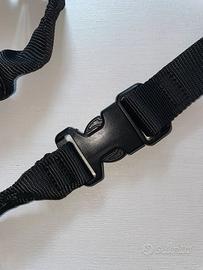 Ammortizzata, regolabile, gancio in metallo, doppio sgancio rapido, mai utilizzata