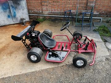 In pre-vendita drift kart artigianale fatto a mano, nelle foto potete vedere il progetto precedente di drift kart a posto singolo (verniciato di rosso) questa volta ho in mente di fare una cosa mai vista prima e introvabile sul mercato facedolo a 2 posti ‼️