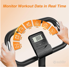 •Display LCD Multifunzione. La cyclette pieghevole Dskeuzeew è dotata di un display LCD multifunzione con comode funzioni di velocità, tempo, distanza, scansione, modalità e reset. Ti aiuta a ottenere informazioni sulla tua condizione fisica. La cyclette professionale è inoltre dotata di un comodo supporto per telefono per l'intrattenimento durante gli allenamenti.