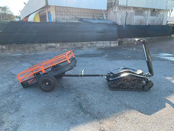 DTV Shredder skateboard cingolato motorizzato. Seminuovo. Monomarcia senza retromarcia. Cilindrata 200 cc con 14hp. Veicolo unico nel suo genere, da guidare ê divertentissimo. Inarrestabile nei terreni sconnessi, in montagna e sulla neve. Dispone di carrello con capacità di trasporto oltre 650 kg. Vendo in blocco, non separatamente. Cedo per motivi familiari, acquisto minivan.