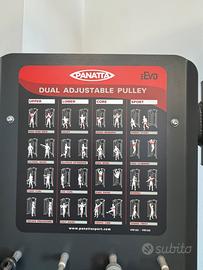 Vendo DUAL ADJUSTABLE PULLEY FULL PANATTA quasi pari al nuovo come si vede bene dalle foto Caratteristiche lunghezza cavo 4,4 m rapporto carico 1:4 – variazione graduale di 1,25 kg 2 multipurpose handle, swing bar, waist bar, curl bar, straight bar, triceps rope, multi-exercise bar e pressdown bar di serie tabella illustrativa Info Tecniche macchina multifunzione: infinita possibilità di allenamento snodo freemotion 360° regolabile in altezza barre multiple per trazioni 2 easy steps TRASPORTO E MONTAGGIO A CARICO DELL’ACQUIRENTE 35 € all'ora smontano e portano giù tutto Penso che ci vorran 2/3 ore per 2 persone se li aiuti anche tu spendi una sciocchezza! L’ATTREZZO SI TROVA AL 4 piano con ascensore