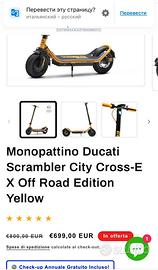 Vendo monopattino elettrico DUCATI City Cross-E X Off-Road – Come Nuovo!