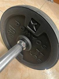 Due manubri 28kg totali modulabili gommati sgancio rapido Due manubri composti da 2 dischi da 5 kg +2 dischi da 2 kg 14 kg ogni manubrio per un totale di 28 kg rivestiti in gomma per attutire gli urti con i pavimento
