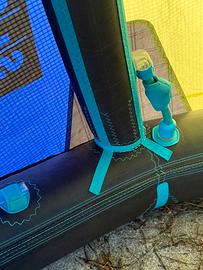 Il kite è stato usato poco , due piccoli forellini . Tessuto, bridles e valvole perfetti. Sempre risciacquato e conservato al riparo dal sole.