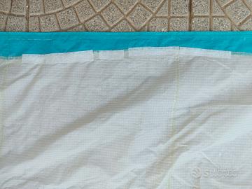 Kite Duotone Evo 2022, misura 11 metri, con due riparazioni come da foto. Leading edge e bladder riparati a regola d'arte in veleria specializzata (disponibile scontrino del 20 giugno 2025) e due piccoli strappi vicino al bordo di uscita, riparati con nastro ripstop; il bordo di uscita è stato rinforzato ulteriormente con lo stesso nastro. Il kite è molto usato, ma vola bene ed il bordo di uscita non presenta fibrillazioni in volo. Prezzo ovviamente trattabile. Visione e prova sul litorale Lazio nord previo accordo.