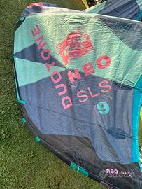 Usato. Duotone - Neo sls. Taglia 9. Revisionato a Settembre, tubi valvole sostituiti, riparazioni del bordo di uscita/trailing edge, no microfori. Disponibili piu foto.