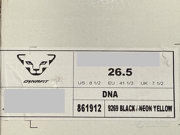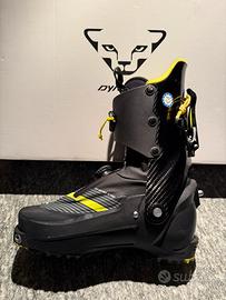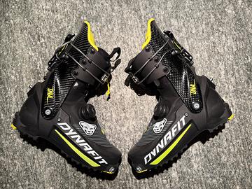 Scarpone da sci alpinismo Dynafit DNA numero 26,5. Scafo in plastica 281 mm. Gambaletto in carbonio. Usati una decina di volte da mio figlio. Tenuti benissimo. Leggerissimi e molto performanti. Modello con chiusura BOA e con cerniera per agevolare la calzata.