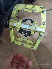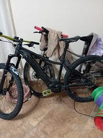 vendo come da titolo e-bike Giant fathom pro, batteria da 625 al litio in ottimo stato di carica,motore Yamaha, affidabile,cambio 12 velocita deore Shimano,freni Shimano con disco di diametro 200 all'anteriore e al posteriore da 180,gomme con lattice anti foratura, al posteriore inserto salsiccia, cerchi con perno passante sia anteriore che posteriore,pedali con doppio uso,scarpa da ginnastica e scarpette coi tacchetti,manubrio di colore verde come i pedali.