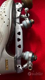 -scarponcino Edea Fly utilizzato invece 3 anni, ancora in buone condizioni, usurato all’esterno a causa della pista molto ruvida in cui pattino, ma ancora efficiente;