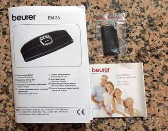 Cintura per addominali. Funziona sulla base della stimolazione elettrica dei muscoli (EMS). Campi di applicazione: riscaldamento/ definizione rassodamento / relax muscolare. Dimensione elettrodi: 11,3*6cm, 8,7*9,7 cm. Lunghezza cintura 105cm, chiusura con strap. Si fornisce scatola originale e libretto di istruzioni per l'uso.