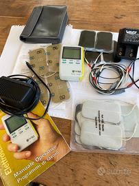 elettrostimolatore usato poco completo di custodia istruzioni ed elettrodi adesivi, con 10 programmi e funzioni selezionabili e personabilizzabili, di rinforzo, modellamento, drenaggio, tonificazione, decontratture, anche per cervicali, trattamento del dolore tens completo di alimentatore da connettere alla rete di casa, o possibilità di funzionante anche a batteria da 9v con suo carica batterie con vari elettrodi adesivi nuovi