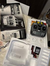 Hitec optic 6. Come combustibile utilizza una miscela di alcool metilico e per l'avviamento si adopera l'avviatore con una prolunga già fornita. Il serbatoio della miscela è trasparente per consentire di avere sempre sotto controllo il livello della miscela.