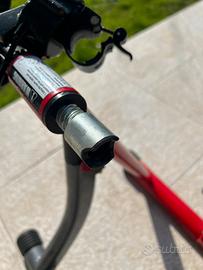 Presenta solo un lieve segno di ruggine su una vite nella zona della manopola di regolazione della resistenza (come da foto).