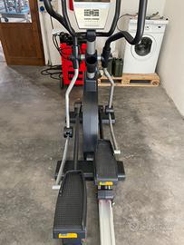 Il suo telaio sovradimensionato e i cuscinetti volventi di grandi dimensioni su tutti i giunti assicurano stabilità e una lunga durata anche durante un allenamento intensivo. La massa del volano di 35 kg è controllata in modo affidabile da un sistema frenante elettromagnetico con propulsione autonoma (GSG). Il cross trainer non necessita quindi di un collegamento di alimentazione per il monitor. La trasmissione tramite cinghia Poly-V è particolarmente silenziosa e praticamente esente da manutenzione. La larghezza del gradino è di 51 cm con una distanza tra i pedali di 14 cm. Ciò garantisce un movimento naturale durante gli esercizi. L'FDC20 GSG è progettato per un peso utente fino a 150 kg. La massa del volano anteriore consente un comodo accesso al dispositivo.