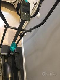 Vendo a malincuore, per mancanza di spazio, ellittica in perfette condizioni, si trova in Centro Storico (Vicenza), raggiungibile in macchina, non disponibile per la spedizione, solo ritiro!!! prezzo non trattabile. attualmente si trova in vendita da Decathlon a 250 euro Informazioni tecniche: Telaio 100% Acciaio Copertura di protezione 100% Polistirene Lunghezza del passo L'ellittica fa lavorare tutti i gruppi muscolari (arti inferiori, superiori, busto, muscoli dorsali e parte centrale del corpo). Quindi, più ampio è il movimento e più muscoli lavorano, aumentando così l'intensità del lavoro cardio. Va abbinato al livello di resistenza che si imposta. L'ellittica 120 ha una lunghezza del passo di 33cm, per permetterti di avere un grande comfort realizzando degli allenamenti efficaci Il volano influisce sul comfort del movimento Abbiamo deciso di comunicare il peso reale del volano, che incide maggiormente sull'energia cinetica e, quindi, sul comfort del movimento. Il volano dell'ellittica 120 pesa 6kg. Davvero! La consolle dell'ellittica 120 è provvista di 5 funzioni: calorie bruciate, distanza percorsa, tempo di allenamento, velocità e frequenza cardiaca tramite i sensori situati sul manubrio.Questa ellittica è anche il primo prezzo con 7 programmi preinstallati scritti in collaborazione con i nostri coach, per accompagnarti nei tuoi allenamenti.Permettono di variare il divertimento in funzione dei tuoi obiettivi (perdita di peso, recupero della forma, tonificazione, performance, ecc) Misurare la frequenza cardiaca L'ellittica 120 è venduta con sensori delle pulsazioni cardiache. Dopo alcuni secondi, sul display verrà visualizzata la frequenza cardiaca. La funzione Hand-Pulse (misurazione della frequenza cardiaca attraverso le mani) non è adatta per i portatori di pace maker. L’ellittica è provvista di rotelle per lo spostamento. Peso prodotto 34 kg.