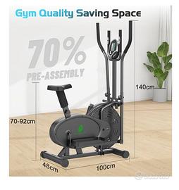 Ellittiche, 2 in 1 Ellittica e Cyclette con Sedile, Monitor LCD, Resistenza regolabile, Pedali Antiscivolo, Macchina per l'allenamento Ellittico, Stepper per l'allenamento Cardio da Casa.