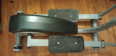 Manubrio mobile: Le leve lunghe servono per allenare contemporaneamente braccia, spalle e parte superiore del corpo. Manubrio fisso: Quello centrale corto, utile per concentrare lo sforzo solo sulle gambe e per monitorare i battiti Console Digitale: Lo schermo LCD sulla parte superiore serve a monitorare i parametri classici: tempo, velocità, distanza percorsa, stima delle calorie bruciate e battito cardiaco.