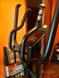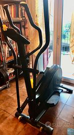 CONSEGNO SOLO A MANO A MANTOVA. Prezzo non trattabile. Ellittica dotata di consolle indica 6 funzioni: tempo, distanza, velocità, calorie, frequenza cardiaca (grazie ai sensori "Hand Pulse"), cadenza. Ha 7 programmi di allenamento e scaricando l’applicazione E-connected o kinomap puoi stabilire un obiettivo settimanale di tempo, di distanza, di calorie da bruciare; inoltre le tue performance vengono registrate e puoi seguire le tue statistiche. Si sposta facilmente grazie alle rotelle anteriori. Dimensioni e peso Dimensioni del prodotto L.146 x l.63 x H.159 cm. Peso prodotto :55 kg.