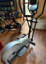 ici Ellittica Domyos VE750 usata poco. Questo prodotto è dotato di una trasmissione magnetica per il massimo comfort durante la pedalata, senza sbalzi.VE 750 associa i movimenti circolari della bicicletta, i movimenti orizzontali della corsa a piedi e quelli verticali dello stepper: è un'attrezzatura completa!Il movimento ellittico avanti o indietro dei piedi associato al movimento delle braccia consente di sviluppare i muscoli delle braccia, quelli dorsali,i pettorali, i glutei, i quadricipiti e i polpacci.Battito cardiaco: Sensore manubrioPeso massimo portato: 110 KgDimensioni ingombro 152 x 57 x 140 cm