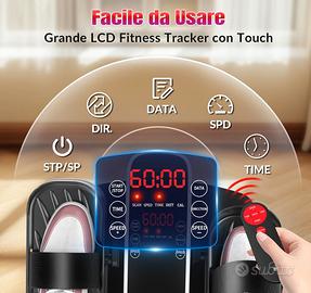 [Display Digitale E Telecomando]: Monitora i progressi del tuo allenamento con il display LED che mostra tempo, velocità, calorie bruciate e distanza; Il telecomando avvia e regola l'ellittica sotto la scrivania con un clic, senza bisogno di piegarsi! Puoi facilmente cambiare modalità, regolare la velocità (15 livelli), il tempo (60 minuti) e la direzione dei pedali.