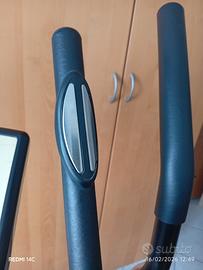 Dotato di doppi manubri sia per allenare le braccia contemporaneamente alle gambe, sia per tenere sotto controllo i parametri cardiaci.