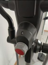 Vendo ellittica Kettler Axos Cross M. Resistenza volano magnetica manuale quindi silenziosa. Caratteristiche Tecniche Principali Sistema di Frenata: Magnetico manuale, regolabile su 8 livelli di intensità tramite una manopola. Volano: Massa volanica di circa 12 kg, che garantisce un movimento fluido e protegge le articolazioni. Computer di Bordo: Display LCD che monitora tempo, distanza, velocità, calorie bruciate e frequenza cardiaca. Rilevazione Cardio: Sensori palmari "Hand Pulse" integrati nel manubrio o jack per sensore esterno (escluso). Struttura: Robusta dotata di cuscinetti a sfera nelle giunture per ridurre l'attrito e il rumore durante l'allenamento. Dimensioni cm 63x115x162h. Sono al piano rialzato quindi solo 5 scalini larghi, aiuto nel caricare in auto. Entra anche in auto smontando in due pezzi (parte orizzontale staccata dalla verticale). Completa di libretto assemblamento quindi subito ricomponibile e libretto programmi computer. Vendo per inutilizzo a €145 trattabili. Non spedisco.