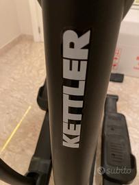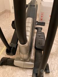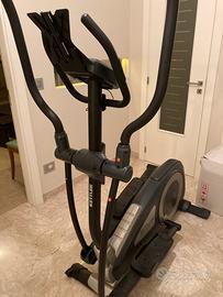 Ellittica professionale Kettler, modello Situs, in condizioni praticamente pari al nuovo. Supporta un peso massimo dell’utente fino a 130 kg e ha un peso complessivo di 34,5 kg. La cyclette è completa di: •1 alimentatore •2 manuali d’istruzione •2 ruote anteriori per facilitarne lo spostamento •1 misuratore di frequenza cardiaca con clip per orecchio •2 sensori palmari integrati nelle manopole per il rilevamento del battito cardiaco Dispone inoltre di un selettore programmi con 4 modalità di allenamento: 1.Manuale: consente di impostare manualmente i livelli di sforzo 2.Programmi automatici: 12 profili preimpostati regolano automaticamente l’intensità 3.Programma personalizzato 4.H.R.C.: allenamento basato sulla frequenza cardiaca In condizioni eccellenti, pari al nuovo. Prezzo leggermente trattabile