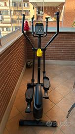 Vendo ellittica DOMYOS/Decathlon in ottime condizioni, stabile e scorrevole. Console con programmi di allenamento, sensori per rilevazione battito sulle impugnature, pedane ampie e manubri multipresa; presente anche porta borraccia/accessori. Ideale per allenamento cardio in casa.