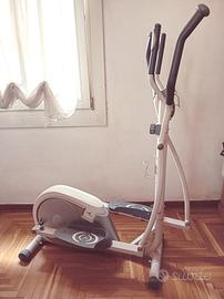 Utilissima ellittica, per creare il proprio spazio fitness a casa. Nel caso si voglia allenare sia gambe che braccia, le maniglie verticali possono essere usate per facilitare il movimento delle gambe accompagnandolo e attivando cosi anche i muscoli delle braccia. La rotella, serve a regolare l'agilità della pedalata, come se stessimo percorrendo una strada piana o piu o meno in salita. Gli effetti sono evidenti da subito con attivazione cardio circolatoria e muscolare, ma con la comodità di farlo in casa . il quadrante , senza batteria, si attiva con l'utilizzo, ci mostra la nostra velocità, i metri percorsi e il numero di battiti, con pressione minima e massima. Chiaramente ha i suoi anni ma non ha mai richiesto manutenzione.