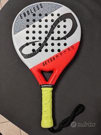 vendo per passaggio ad altra pala, una Endless Akyra bianca, nucleo in polietilene, peso di 357 gr. compreso di overgrip e copritesta, bilanciamento a 25,7 circa. ha qualche segno dovuto all'usura e al gioco, assolutamente nessun danno o crepa. la pala l'ho comprata usata circa un anno fa e utilizzata per una ventina di partite visto che sono stato fermo per 7 mesi. prezzo leggermente trattabile. preferibile scambio a mano a Roma o Fiumicino.