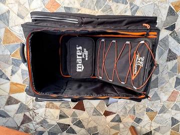 Vendo in blocco: muta Mares in 2 pezzi tg. 3, scarpette tg. XS, pinne Cresssi tg. 35-36, pinne con lacciolo Effesub tg. M, maschera Mares in silicone con boccaglio, guanti Scubapro tg. S, cintura pesi Tecnisub "pocket system" 7,5 kg, sacca impermeabile, borsone trolley Mares. Tutto in ottime condizioni.