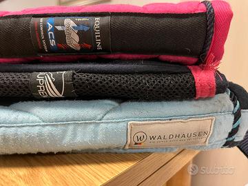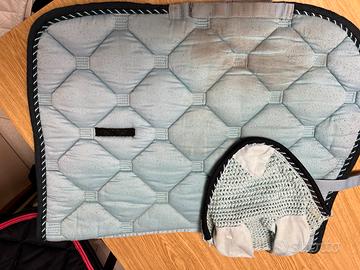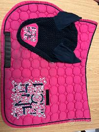 Pony-Agnellino con pelo sintetico + 3 completi sottosella e cuffietta per pony. Cuffiette come nuove, agnellino come nuovo, sottosella usati senza rotture o difetti.