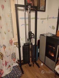 ercolina con pacco pesi da 55kg e altezza cavo regolabile. euro 325 altezza 200 cm larghezza cm 65 profondità cm 35 spese spedizione euro 150 circa