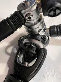 Vendo set erogatori completo di alta fascia, ideale come configurazione primaria robusta e performante. Il kit è composto da: ✅ Primo Stadio: Scubapro MK25 (Pistone bilanciato). È uno dei migliori primi stadi mai prodotti, garantisce flusso d'aria eccezionale a qualsiasi profondità. ✅ Secondo Stadio: Scubapro G250 HP (High Performance). Modello bilanciato e regolabile, un classico affidabile. ✅ Octopus (Emergenza): Aqua Lung serie LX. ✅ Manometro: Uwatec (scala 300 bar). ✅ Fruste incluse. Condizioni: L'attrezzatura si presenta in eccellenti condizioni estetiche (vedi foto), ma è ferma inutilizzata da circa 7 anni. Viene venduta con la formula "visto e piaciuto" e necessita obbligatoriamente di revisione completa prima dell'utilizzo in acqua. Un'ottima occasione per chi cerca un MK25 a un prezzo accessibile da rimettere a nuovo. 📍 Consegna: A mano in zona Mirano (VE) o spedizione a carico dell'acquirente. 💰 Prezzo: 220€ (leggermente trattabili)