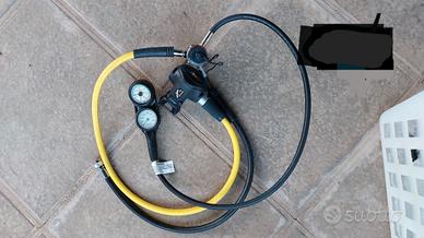Erogatore Dacor Eagle incluso di manometro e profondimetro in consolle. Primo stadio attacco DIN.