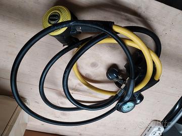 Octopus erogatore per immersioni subacquee marca MARES modello AXIS. Completo di primo e secondo stadio e manometro. Usato solo in 4/5 occasioni ed in ottimo stato. Piccoli segni di usura dovuti al normale utilizzo.