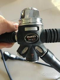 Materiale usato per fare il corso e basta, solo acqua dolce in lago, come nuovo!!! Primo stadio Mares MR32T con sistema antigelo. Secondo stadio Mares Proton ice Extreme, modello migliore in acciaio (non quello in plastica). Frusta console + un ulteriore frusta libera. Il prezzo è trattabile